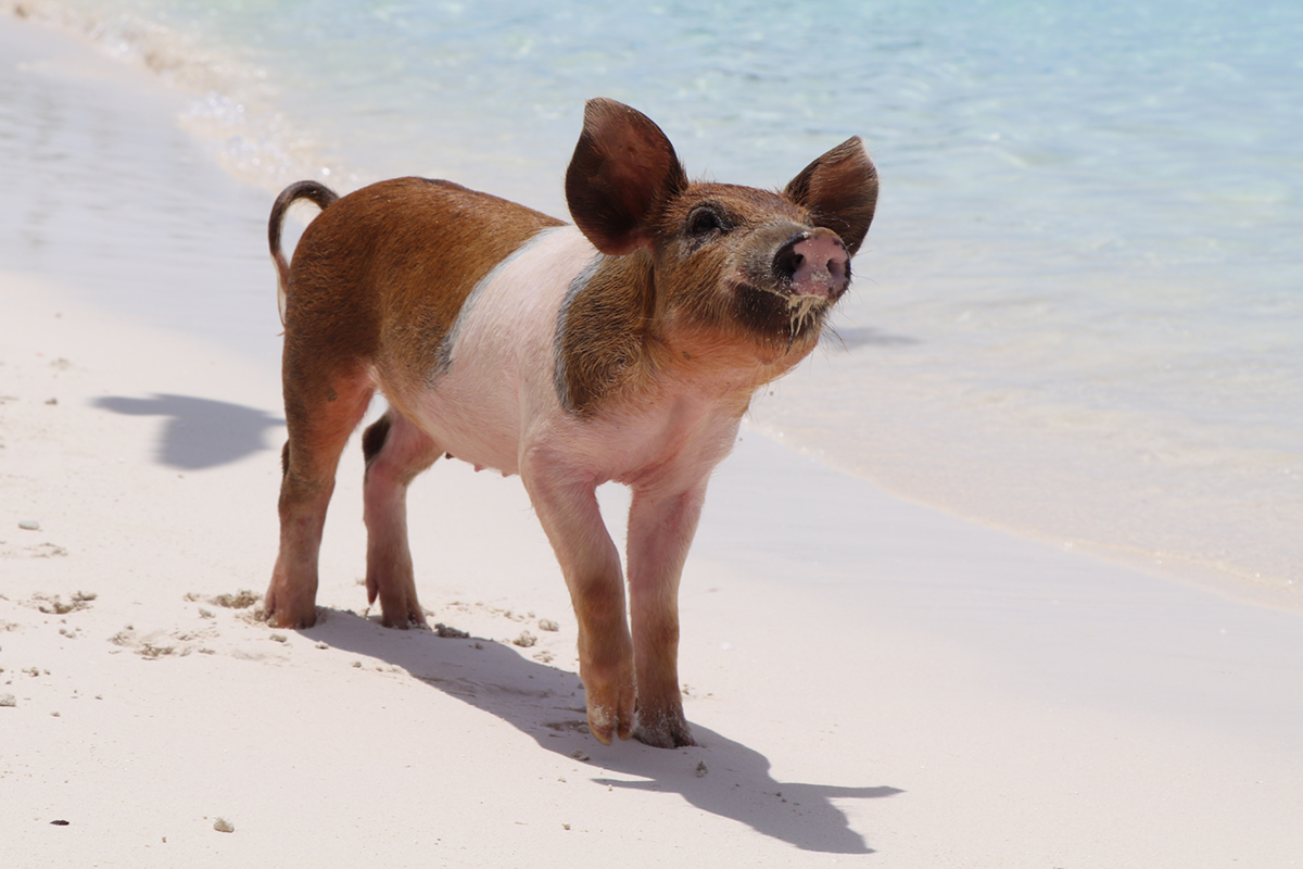 Quando si parla di nuotare con i maialini, tutti pensano subito ad Exuma. Ed è corretto: lì si trova la colonia più famosa. Sulla loro origine circolano diverse leggende, tra racconti di pirati e storie di naufragi. Quel che pare certo, però, è che questi animali si sono adattati perfettamente all’ambiente e oggi traggono grande beneficio dalla loro notorietà, perché di fame, di sicuro, non soffrono.
